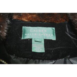 Elevate your cold-weather wardrobe with this luxurious Ralph Lauren velvet jacket, crafted from a sumptuous rayon and silk blend. The elegant black quilted velvet offers both warmth and style, while the faux fur collar adds a timeless, vintage-inspired touch. This jacket is perfect for women who appreciate classic fashion with upscale details—ideal for evenings out, winter gatherings, or elevating everyday wear. Key Features: • Brand: Lauren Ralph Lauren • Size: Women's Large • Material: Velvet (82% Rayon, 18% Silk) • Lining: Quilted • Collar: Brown faux fur • Closure: Front zip • Pockets: Two side pockets • Waist: Slightly cinched elastic waist for a flattering fit • Color: Deep black with brown faux fur • Style: Classic, elegant, vintage-inspired Excellent pre-owned condition. Zipper in good working order. No discoloration. Minimal visible wear - no pulls or pilling. Faux fur collar is soft with no matting. No holes, tears, rips or stains. All stitching is intact. Refer to photos for complete condition. vintage glam, classic style, winter fashion, holiday outfit, boho luxe, upscale casual, grannycore, minimalist elegance, Ralph Lauren, faux fur, quilted jacket