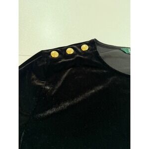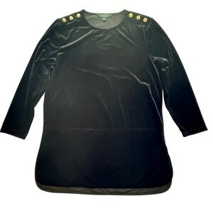 Keywords: Ralph Lauren, Velvet Top, Tunic Top, Black Top, Gold Buttons, Long Sleeve Top, Womens Top, Crew Neck, Party Top, Holiday Top, Size L, Lauren Top, Dressy Top