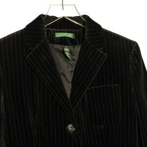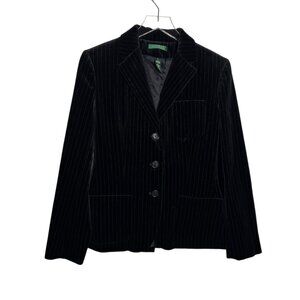 Ralph Lauren Black Velvet Womens Blazer size 8 NWT pinstripes