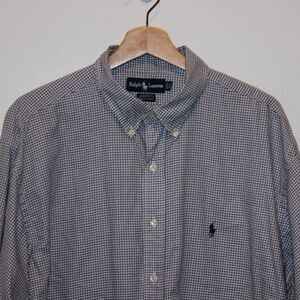 Ralph Lauren Black White Check 100% Cotton Blend Button-Up Shirts Men Size 17.5