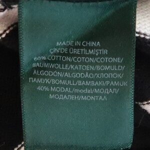 This is a classy and timeless lightweight knit sweater from Lauren Ralph Lauren. It features a boat neckline, long sleeves, and a black and white gradient stripe pattern. Crafted from 60% cotton and 40% modal. I suggest wearing it alone or layered under a blazer for a business casual twist. A true closet staple.