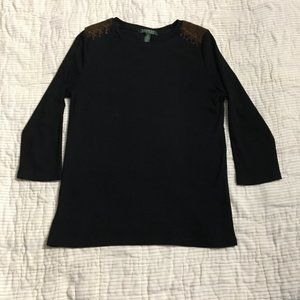 Ralph Lauren Black Women's Top with Faux Leather Shoulder Accents Size Large*