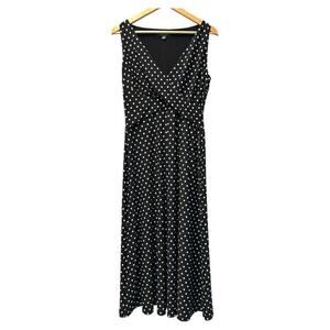 Ralph Lauren Black Y2K Retro Vibe Chic Polka Dot Stretch Knit Maxi Dress Sz 10