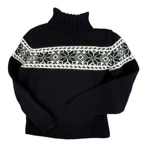 Elegant turtleneck with intricate cream pattern. Cozy and stylish for cooler days. Lauren Ralph Lauren VTG Women's Fair Isle Wool Turtleneck Sweater Black/Cream Green label