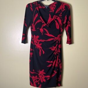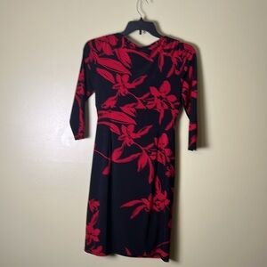 Ralph Lauren Black and Red mob wife,career Sheath Dress V-Neck 3/4 Sleeve
