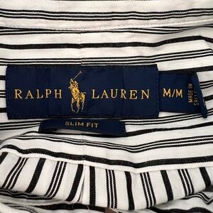 Experience timeless elegance with this Ralph Lauren casual button down shirt, featuring a sophisticated black and white color palette. Crafted from premium materials, it offers a comfortable fit and a polished look, perfect for both casual outings and professional settings.