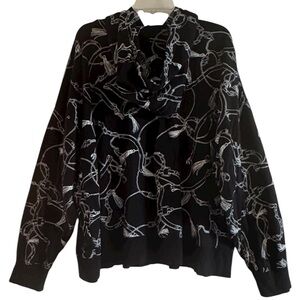 Stylish black sweater with white chain pattern. Comfortable fit. Perfect for casual wear.
