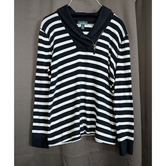 Ralph Lauren Black white Striped Pullover Sweat Shirt Top XL zip accent
