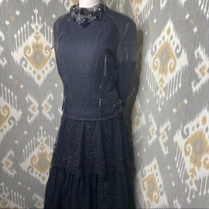Ralph Lauren Black on Black Embroidered Tulle & Lace Tiered Maxi Ball Skirt