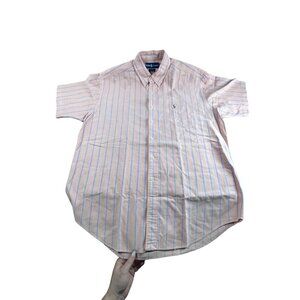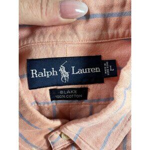 Ralph Lauren Blake 100% Cotton Shirt L Button-Down Peach & Blue Stripes