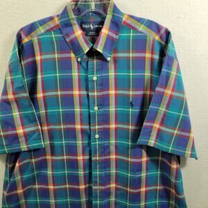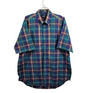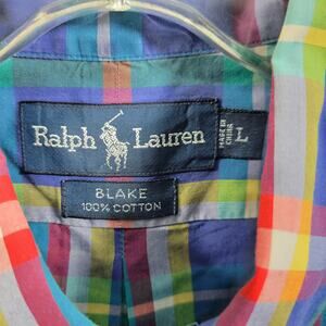 Ralph Lauren Blake Blue Plaid Button Front Shirt Size L 101424-0923