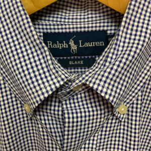 Ralph Lauren Blake Blue White Small Gingham Check SS Button Down Shirt Size M
