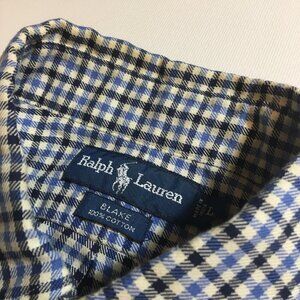 Ralph Lauren Blake Button Down Large Blue Navy Gingham Check VTG 90s Blue Label