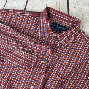 Ralph Lauren Blake Button Down Shirt Adult Large Red Green Yellow Plaid Mens