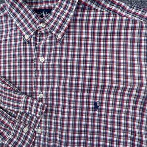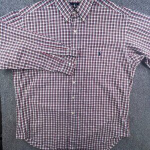 Ralph Lauren Blake Button Up Shirt Men’s Size Large Red White Blue Plaid L/S