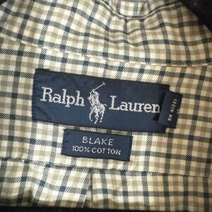 Ralph Lauren Blake Dress Shirt Men's XL Brown Blue Plaid Button Up Long Sleeve