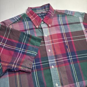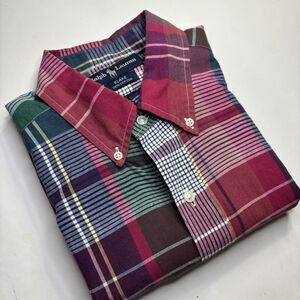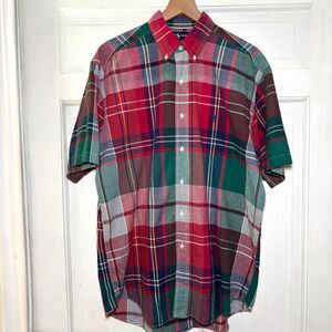 Ralph Lauren Blake Green Red Plaid Short Sleeve Shirt Colorful Checkered Men's L