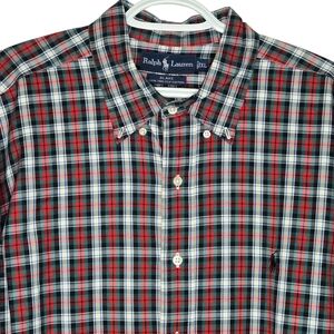Ralph Lauren Blake Mens XL Red Green Plaid Button Down Long Sleeve Shirt Holiday