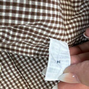 A lightweight 100% cotton short-sleeve shirt with a brown and white check pattern, button-down collar, and classic fit. Ideal for casual settings.