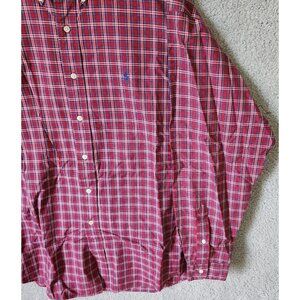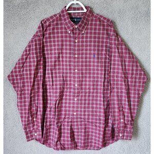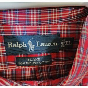 Ralph Lauren Blake Two-Ply Cotton Red Plaid Long Sleeve Button Down Shirt Size XL.