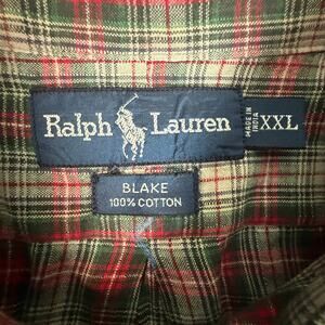 Ralph Lauren Blake XXL Plaid Shirt Green Red Tartan Long Sleeve Pony Logo Cotton