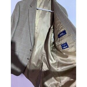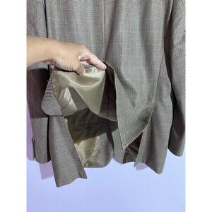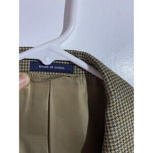 Ralph Lauren Blazer Mens 44L Tan Houndstooth Silk Wool Windowpane Plaid Office