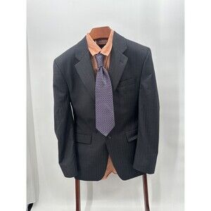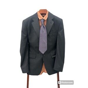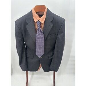 Ralph Lauren Blazer Mens Sport Coat Jacket 40R Gray Pinstripe 2 Button 100% Wool
