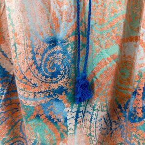 Ralph Lauren Blouse Paisley Peasant Tassel Tie Neck 3/4 Sleeve Orange, MP