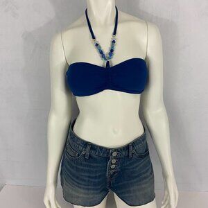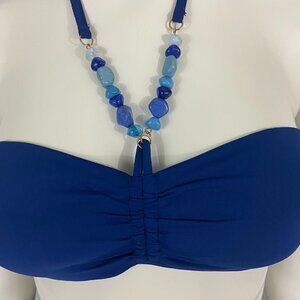 Ralph Lauren Blue Beaded Beach Club Bandeau Padded Bikini Top