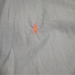Preowned Blue ribbed Ralph Laure Custom Fit button down shirt.