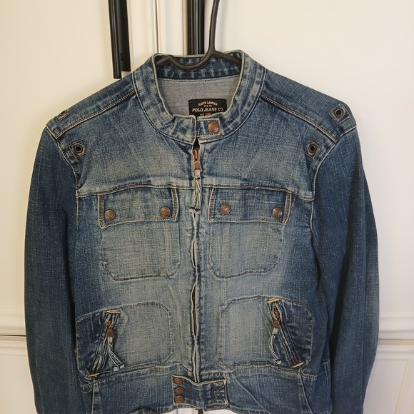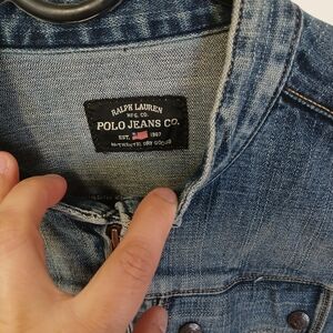Classic Ralph Lauren denim jacket. Features button closure and stylish design.