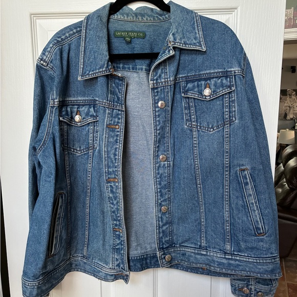Stylish blue denim jacket by Ralph Lauren. Ideal for layering and casual wear.