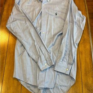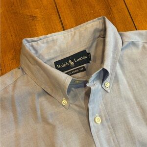 This Ralph Lauren dress shirt in a refined blue hue offers a timeless look with its classic button-down collar and lightweight fabric. Ideal for both professional and semi-formal settings, it combines elegance with comfort for versatile wear.