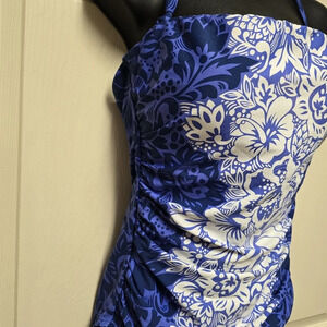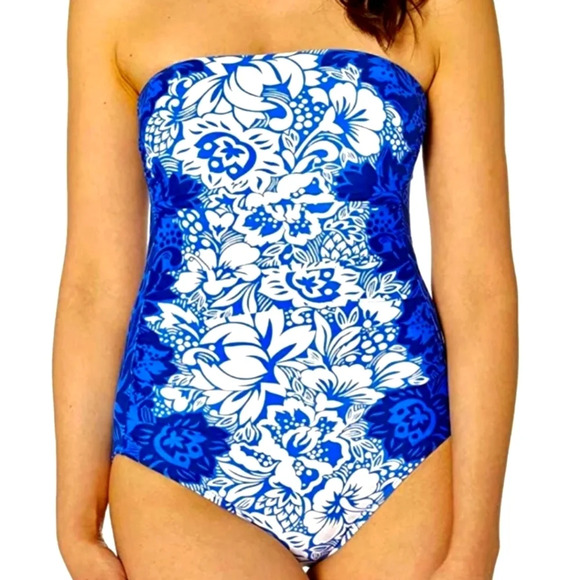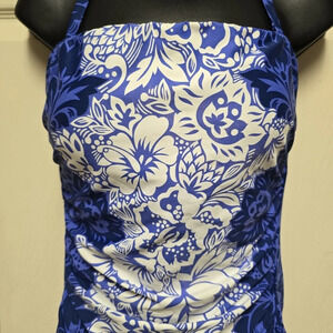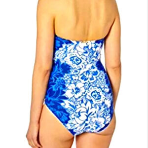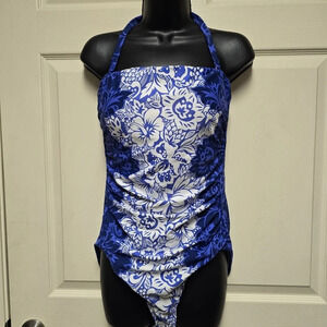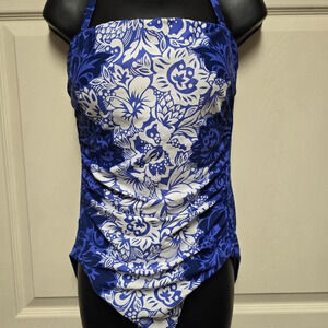Ralph Lauren Blue Floral Underwire Tummy Control Bandeau Removeable One Piece 14