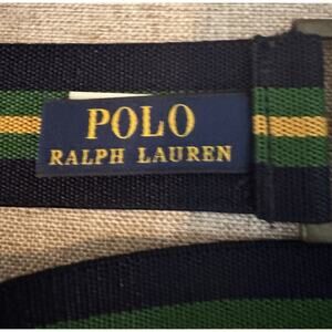 The Ralph Lauren Blue Green Yellow Stripe Elastic Belt is a stylish and adjustable accessory for both men and women. Made of polyester and spandex, this vintage-inspired belt features a classic striped pattern in blue, green, and yellow, accented with brass hardware. The elastic material ensures a comfortable and stretchy fit, while the hook buckle adds a secure closure. Perfect for adding a preppy touch to any outfit, this belt is a versatile and fashionable choice for those who appreciate quality and style.