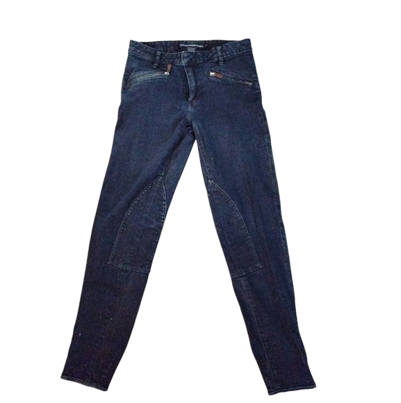 These Ralph Lauren Blue Jeggings offer a sleek and modern fit, perfect for any casual occasion. The rich blue color stylish zippers and snaps made with comfortable fabric ensure a flattering silhouette and all-day comfort. Enjoy the blend of style and durability in these versatile jeggings.