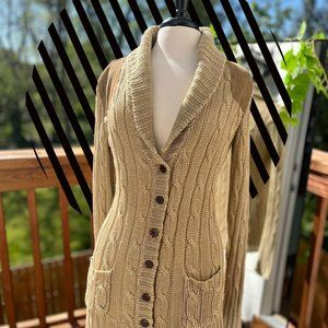Ralph Lauren Blue Label 100% Linen & Suede Cardigan Sweater