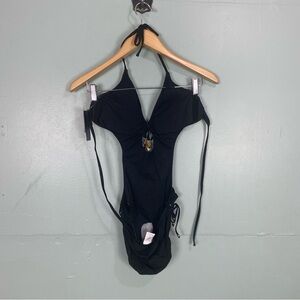 Ralph Lauren Blue Label Black One Piece Bikini Swimsuit Embellished Tassel