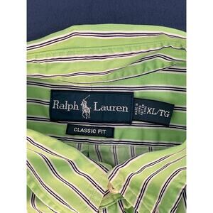 Ralph Lauren Blue Label Classic Fit Green with Blue White Stripe Button Down XL