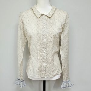 Ralph Lauren Blue Label Cream Floral Pin Tuck Pleat Button-Up Blouse SZ 10