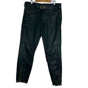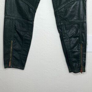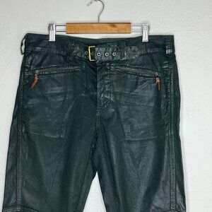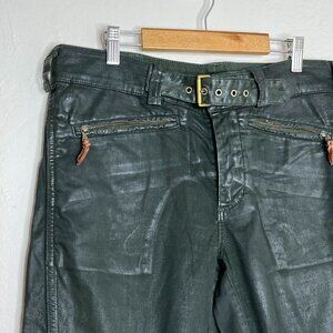 Ralph Lauren Blue Label Skinny Waxed Belted Moto Jeans Green Size 12