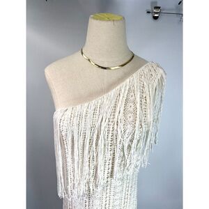 Ralph Lauren Blue Label White Crochet Dress Medium One Shoulder Fringe $998 NWT