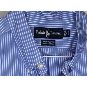 Ralph Lauren Blue Label YARMOUTH Shirt Men 17 32/33 Blue/White Stripe Button Down/Machine Wash Freshly Washed