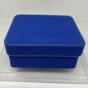 This is a beautiful Ralph Lauren Blue Linen Fabric Padded Box 8” x 6.75” x 3.5”. White contrasting stitching. Perfect condition. No stains. No odors. No tears.