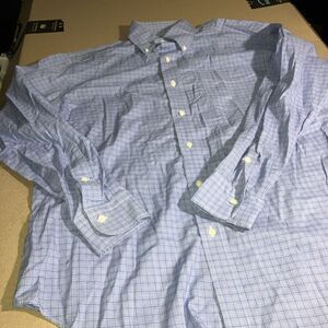 Ralph Lauren Blue Plaid Button Up Shirt 16.5, Non Iron Classic Checkered, Large