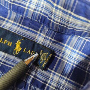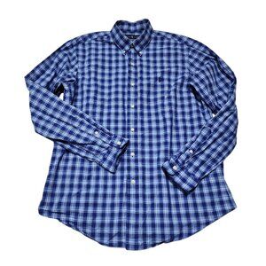 Ralph Lauren Blue Plaid Button-Down Shirt L Mens Cotton Classic Fit Long Sleeve