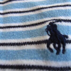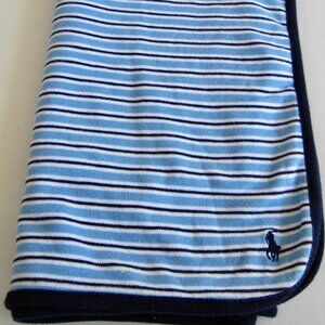 Ralph Lauren Blue Rugby Stripe Baby Blanket Cotton Knit Polo Logo 24 x 32”