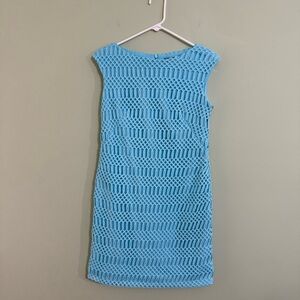 This stunning Ralph Lauren dress features a vibrant blue hue, perfect for cocktail occasions. The sleeveless design and bateau neckline create a sophisticated silhouette, while the sheath style offers a flattering fit. Ideal for making a statement at any event. The dress is 35 inches long and has Fully lined.