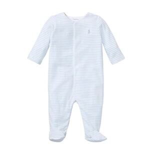Ralph Lauren Blue Stripe Terry Cloth Velour Logo Baby Sleepsuit Footie 6 Mths