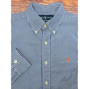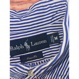 Ralph Lauren Blue Striped Button-Down Shirt Classic Fit Medium Mens Cotton